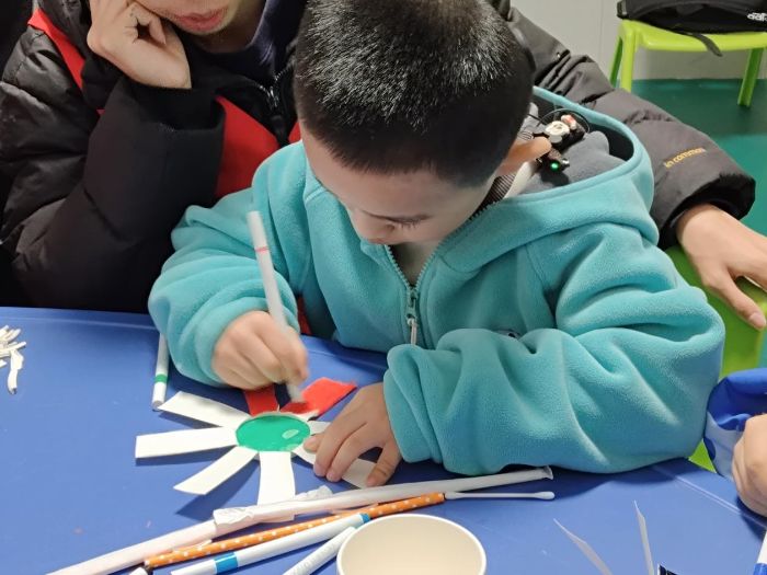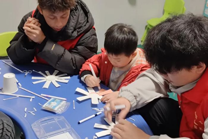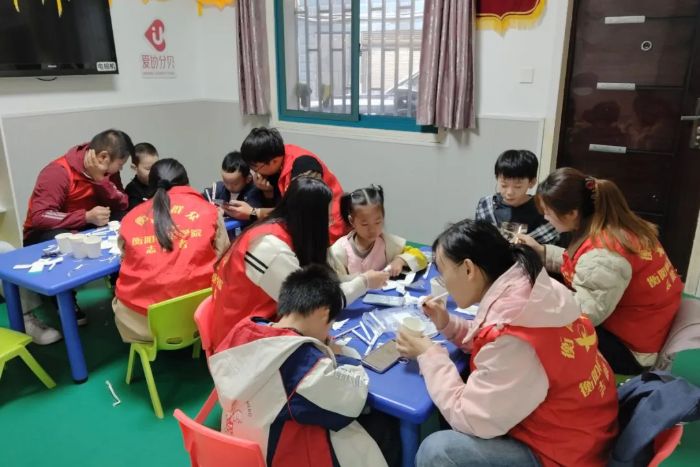 以乐为媒,叩响心扉活动现场,志愿者们提前备好纸杯、胶棒等手工材料,耐心讲解制作步骤,手把手指导孩子们完成作品。从起初的无从下手到逐渐熟练操作,再到成功做出生动可爱的手工作品,孩子们在志愿者的陪伴与鼓励下,慢慢绽放自信笑容。这场趣味十足的手工互动,不仅锻炼了孩子们的动手能力,更在协作中拉近了心与心的距离。