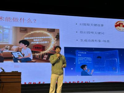 团队向同学们展示了运用AI技术创作的老兵动漫图片,并分发了自主设计的帆布包、书签、活页本、明信片等主题文创产品。这些充满创意的小礼物,瞬间拉近了学生们与老兵精神的距离。