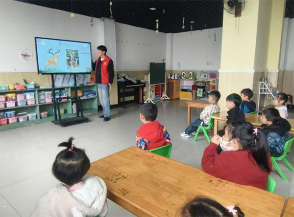 图为宣讲员丁健向小朋友们展示国家公园风采