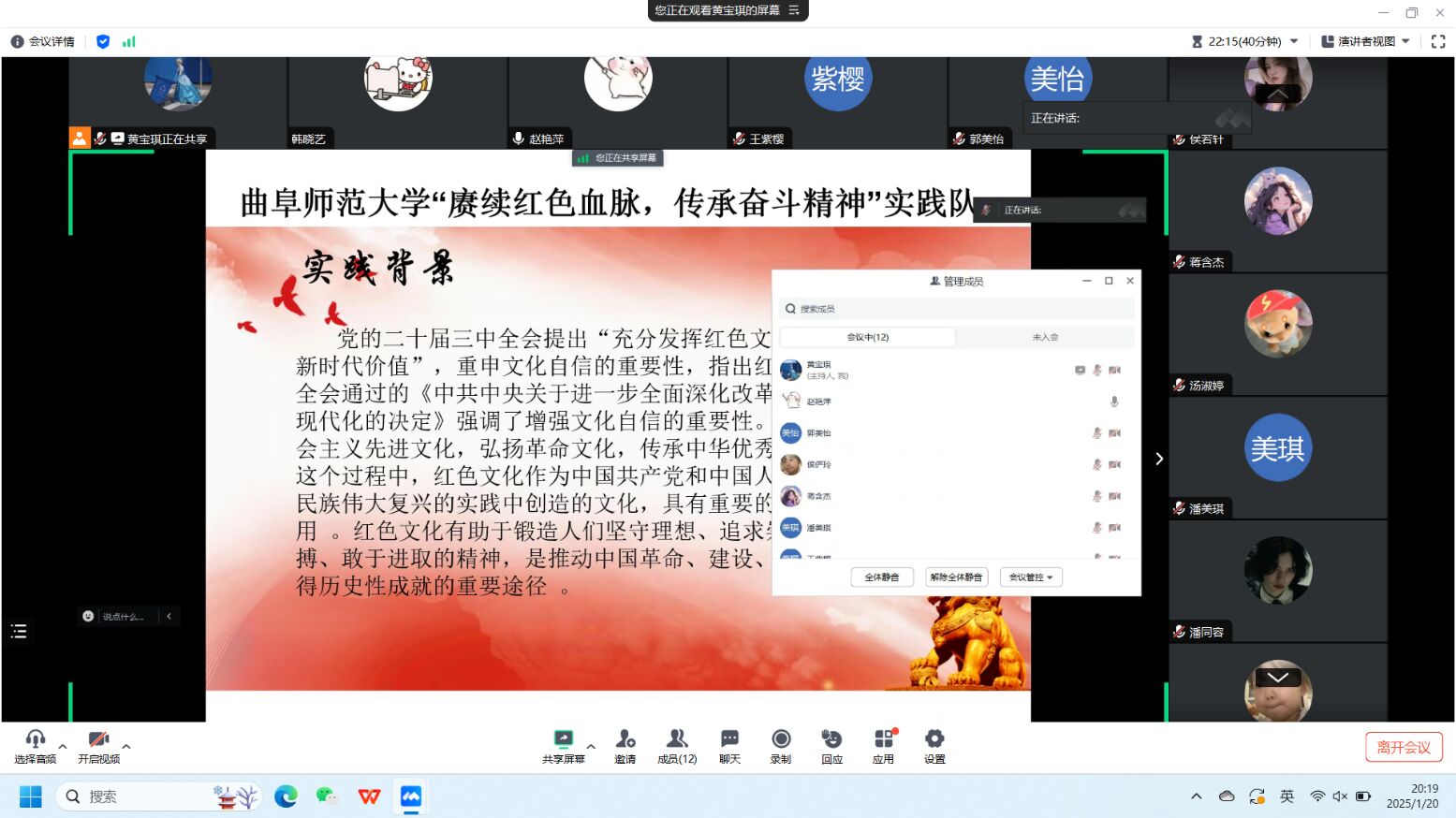 前期筹备,开启红色序章 实践活动开展前,社会实践队员们通过线上会议精心筹备。党的二十届三中全会强调充分发挥红色文化新时代价值,这为实践队指明了方向。会上,队员们明确了实践目的:追忆红色故事、重走历史足迹、深化历史认识。考虑到各地实际情况,实践队决定采取分散实践的方式,队员们在家乡就近开展实践活动。为了更好地了解家乡红色文化,队员们提前行动,有的在档案馆查阅珍贵档案,在泛黄的纸张中寻找历史的线索;有的借助网络搜索资料,拓宽信息获取渠道。
