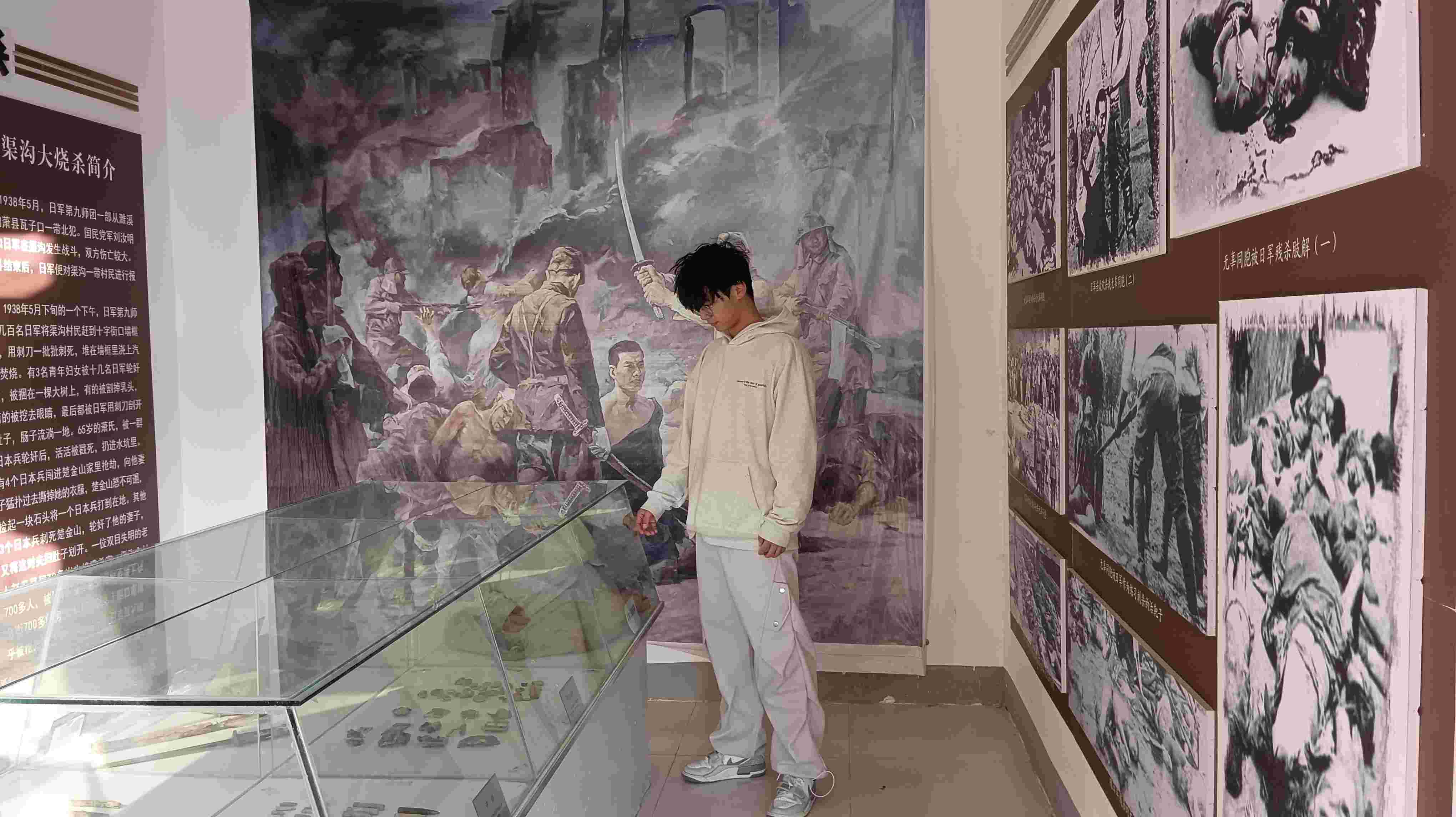 在侵华日军渠沟大烧杀遇难同胞纪念地,团队成员参观了纪念广场、遇难同胞墓地以及相关历史陈列,详细了解了当年日军在此地犯下的暴行。队员们通过实地考察、听取讲解员介绍、观看历史资料片以及与当地居民交流,收集到了许多宝贵的第一手资料。团队组织献花圈、默哀等纪念仪式,表达了对逝者的敬意和缅怀之情。为了更好地传播这段历史,莘蒲聚力团队利用新媒体平台记录并分享他们的实践经历,借助网络的力量扩大影响,让更多的人了解并记住这段不容忘却的历史。