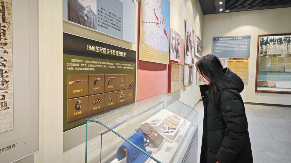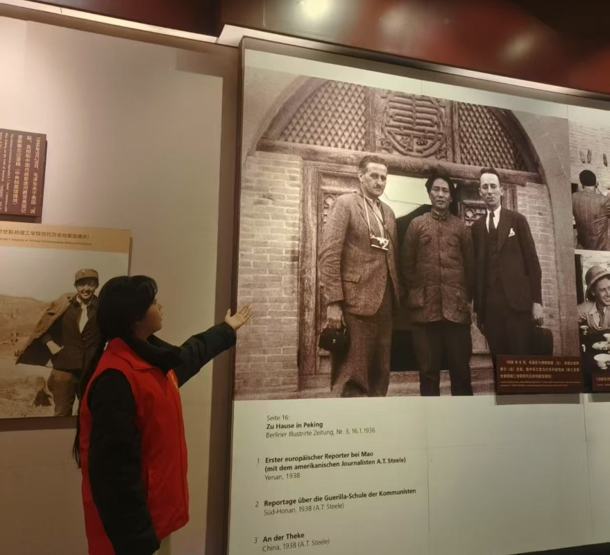 图为实践团成员参观作战武器和详实的文献资料 程歆然 供图