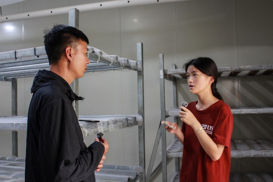 在基地负责人刘镇先生的带领下,实践团成员们走进智能化大棚,近距离观察了毛豆与灵芝的现代化种植场景。刘镇先生详细介绍了基地的核心运营理念——科技驱动。由浙江万旺生物科技有限公司打造的这片基地,在羊肚菌等高端食药用菌的种植上,广泛应用了智能化设备和精准环境控制系统。