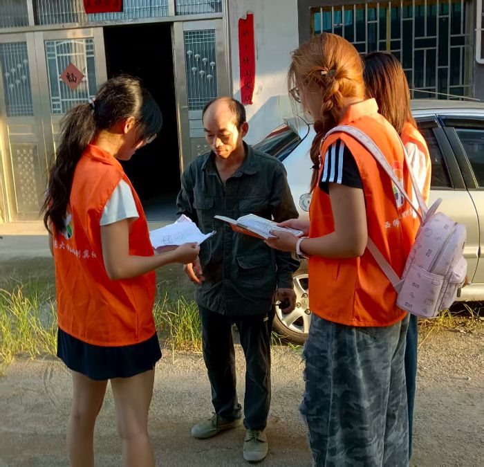图为团队成员对网格员进行简单访谈,刘婷摄。