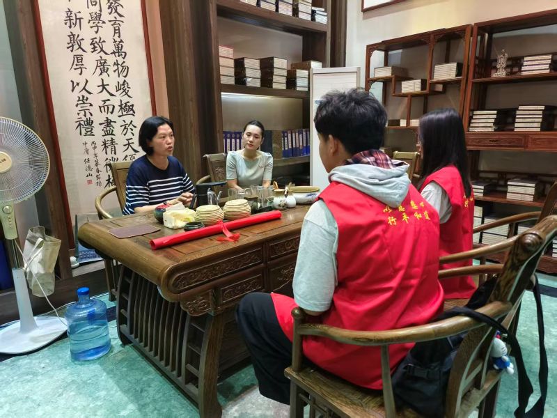 当日下午,实践团队与李学欣、陈琴琴两位老师展开深度对谈,话题聚焦“女性在新时代家风建设中的角色”。作为孔子第77代孙媳和传统文化教育者,李学欣老师从家族文化传承的角度分享实践心得。她家中悬挂孔子像,引导孩子诵读《论语》《大学》,秉持“父母学习,孩子进步”的理念,在日常生活中通过平等互动、共同体验实现传统文化的现代传递。陈琴琴老师则从现代教育视角指出,母教应融汇传统美德与时代精神,她以自身从反对到支持孩子cosplay经历的转变,阐明母亲需以开放心态理解子女世界,实现家风在继承中创新、在包容中发展的当代路径。