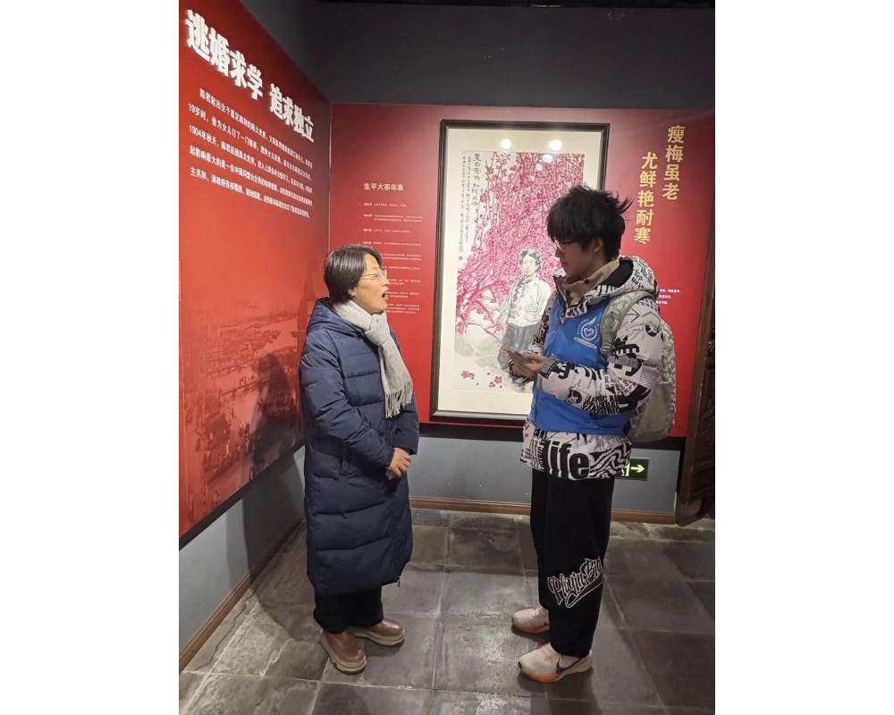 陈君起是嘉定第一位中共党员,她虽生于豪绅家庭,却积极学习先进知识,反对封建礼教,领导妇女解放运动。在陈君起纪念馆,那一张张当年的图片让实践团十分触动。最令人动容的,是陈君起在狱中画的梅花图;在失去自由的日子里,她用最鲜艳的颜色,画下了自己永不褪色的信仰。接着,实践团与馆内的负责人进行了沟通交流,更加深入地了解陈君起的相关事迹与精神,深化了他们的理解与感悟。