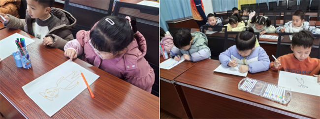 课堂之上,志愿者们还带领孩子们开展“我心中的超级英雄”绘画活动。稚嫩的笔触在白纸上流淌,有的画出冲锋的战士,有的画出逆行的消防员,每一笔都是对勇敢与奉献的最纯真注解。志愿者们蹲下身,与孩子们并肩而坐,在交流中倾听童心,在陪伴中传递温暖。活动室里,画笔划过纸张的沙沙声与孩子们的笑声交织,成了寒冬里最动人的乐章。