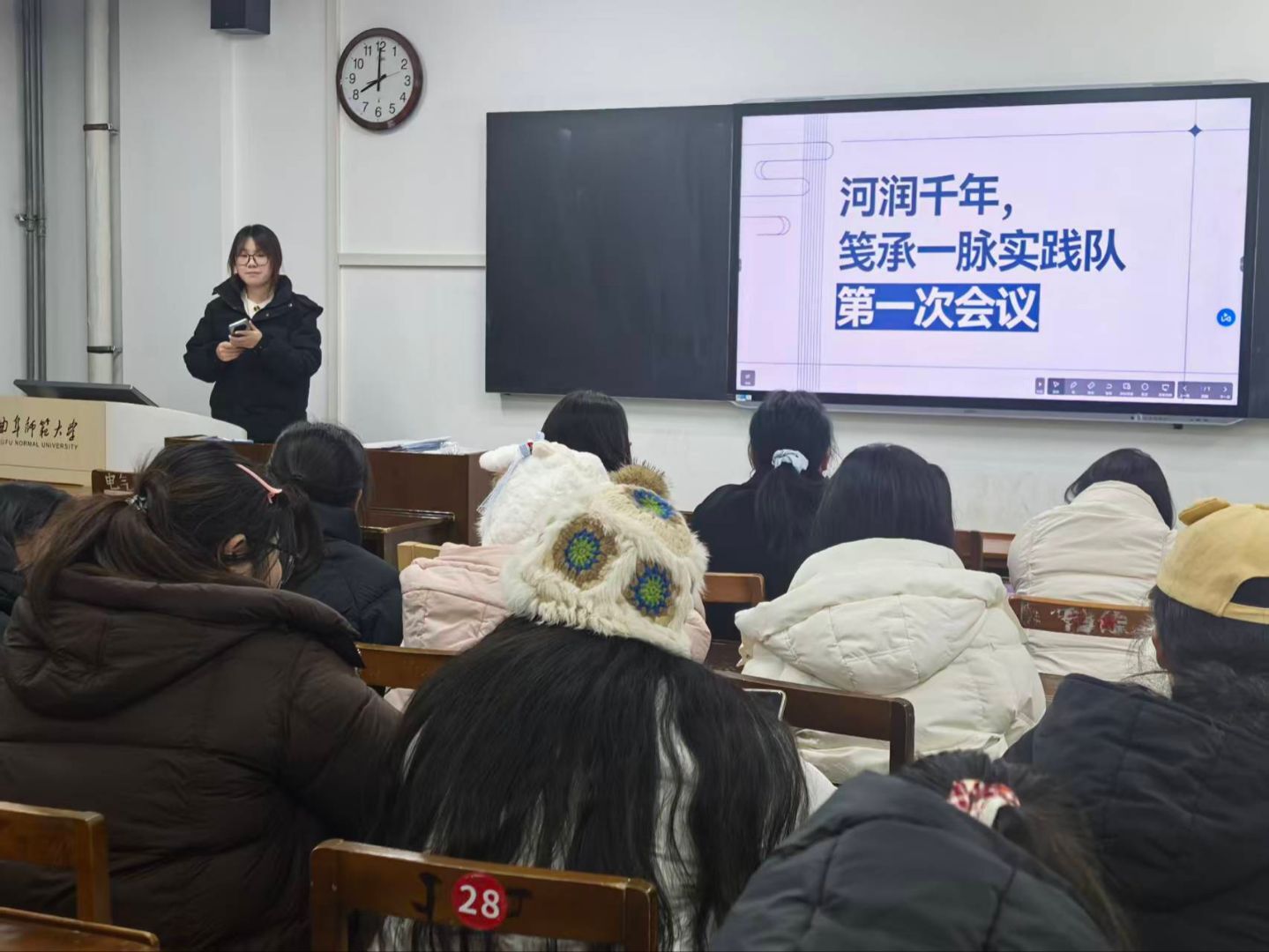 为扎实推进寒假社会实践活动,明确实践方向与分工,2026年1月6日,曲阜师范大学翻译学院“河润千年,笺承一脉”寒假社会实践队召开第一次全体会议,系统部署以莒县非物质文化遗产“过门笺”为核心的社会实践工作。会议聚焦实践目标、任务分工与实施方案,为后续深入开展调研与跨文化传播奠定组织与规划基础。