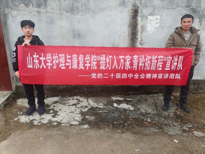 为深入学习宣传贯彻党的二十届四中全会精神,推动全会精神在基层落地生根、见行见效,2026年1月28日,山东大学护理与康复学院“提灯入万家,青衿拓新程”宣讲队队员王明萱走进王西庄村,开展理论宣讲下基层活动,以护理专业青年的责任担当,推动党的创新理论走进乡村、深入民心。