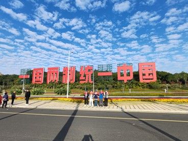 在阳光普照的沙滩上,“大手拉小手”雕塑巍然屹立,三双大手握着一个小手,形成“回”字,寄托着祖国母亲对台湾同胞的深情呼唤。“一国两制,统一中国”的标语传递着两岸同胞渴望祖国统一的共同心愿。在“一国两制”沙滩眺望海峡,巨幅标语与海浪涛声共鸣,实践队成员强化了对“一国两制”伟大构想的认识,更坚定了维护国家统一、捍卫领土完整的信念。