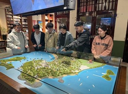 实践队成员观看东山岛全景沙盘。团队供图