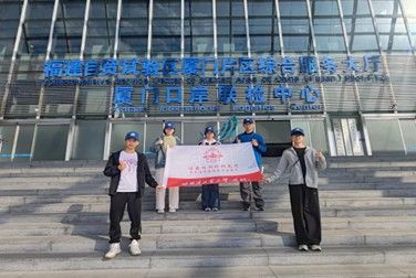 实践队成员在福建自贸区厦门片区综合服务大厅前。陈斌供图