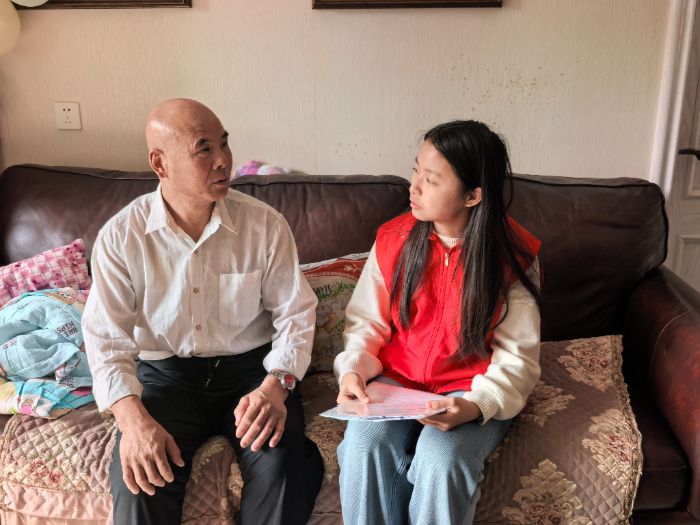 活动当天,团队分为两组开展一对一深度访谈。一组队员与老年人面对面交流,细致了解其在智能挂号、医保查询、就医流程理解等环节遇到的具体阻碍,记录下他们对数字化就医工具的使用困惑与实际诉求。另一组队员则与老年人子女进行访谈,重点收集其在协助父母就医过程中遇到的操作难点、担忧的风险隐患,以及对医保政策的认知盲区,系统梳理出家庭在老年就医场景中的共性痛点。