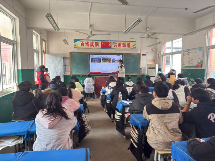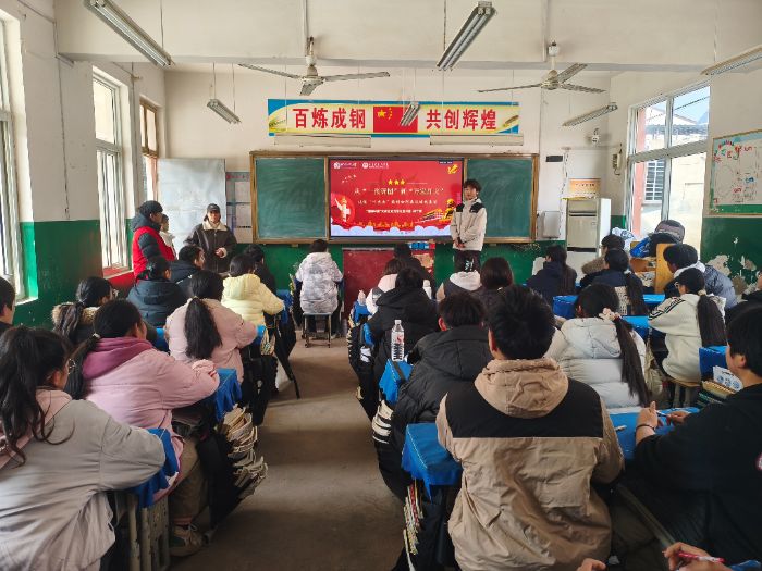 为深入学习贯彻党的二十届四中全会精神,引导广大青年学生准确把握全会的核心要义,推动党的创新理论融入青年学生的成长历程,2026年2月4日上午,河南师范大学马克思主义学院“理响中原”大学生党员理论宣讲团走进新乡市封丘县荆乡回民中学,团队成员杨子腾为该校同学开展《从“一张蓝图”到“万家灯火”,谈谈“十五五”规划如何惠及你我生活》主题宣讲。