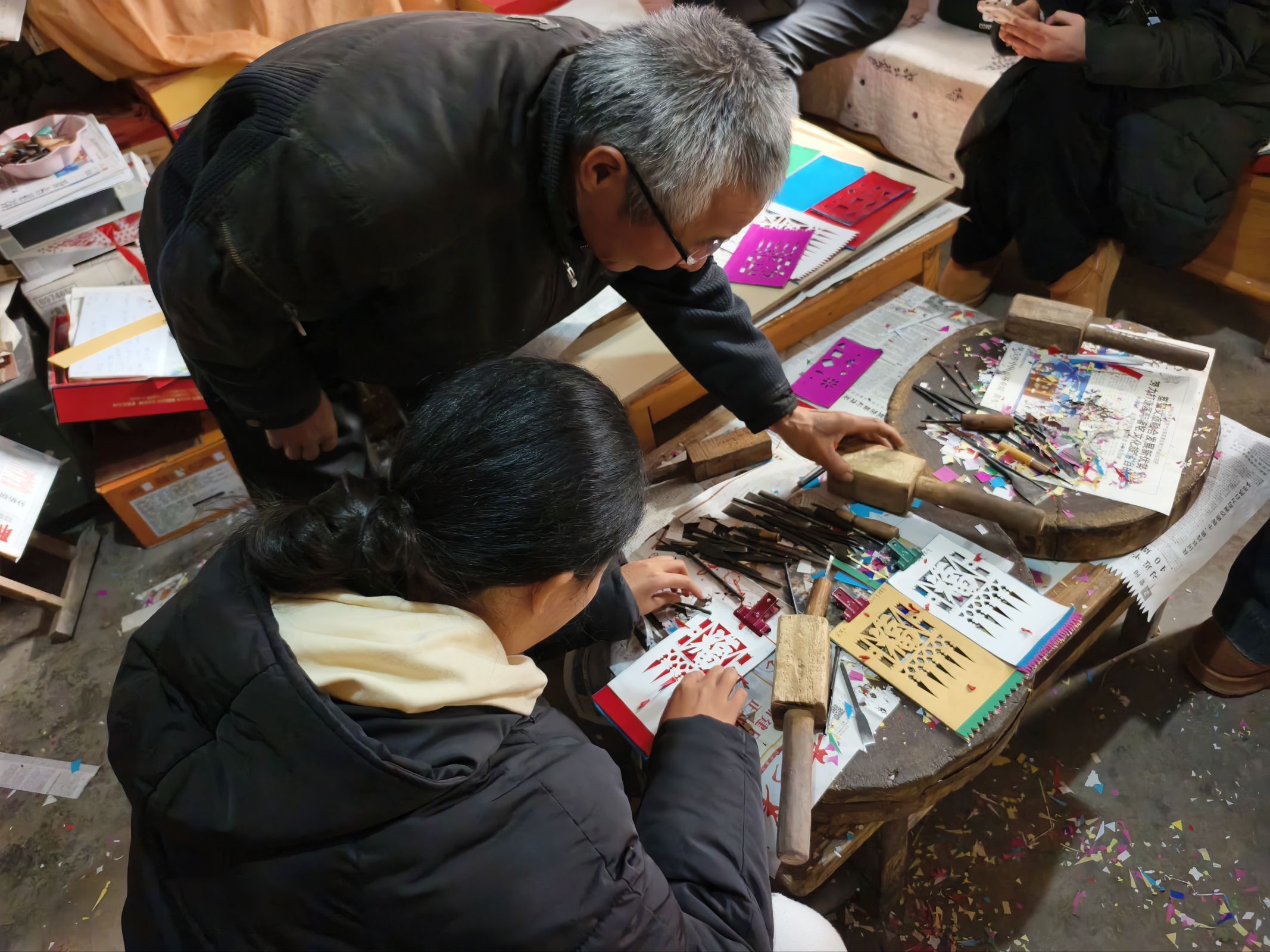 在设计过程中,队员们系统调研了不同地区过门笺的形制特征与符号体系,并尝试在创作中体现黄河文化的共同美学基因。实际操作中,队员们也面临文字、图案与边框如何自然衔接、比例如何协调等问题,尤其在镂空雕刻时,连接处过细易导致断裂。通过向多位非遗传承人请教,团队在专业指导下逐步优化刀法走向、连接点位与布局节奏,逐渐领会到“千刀不乱”背后严谨专注的匠艺精神,也更深刻感受到非遗与当代生活链接的多种可能。