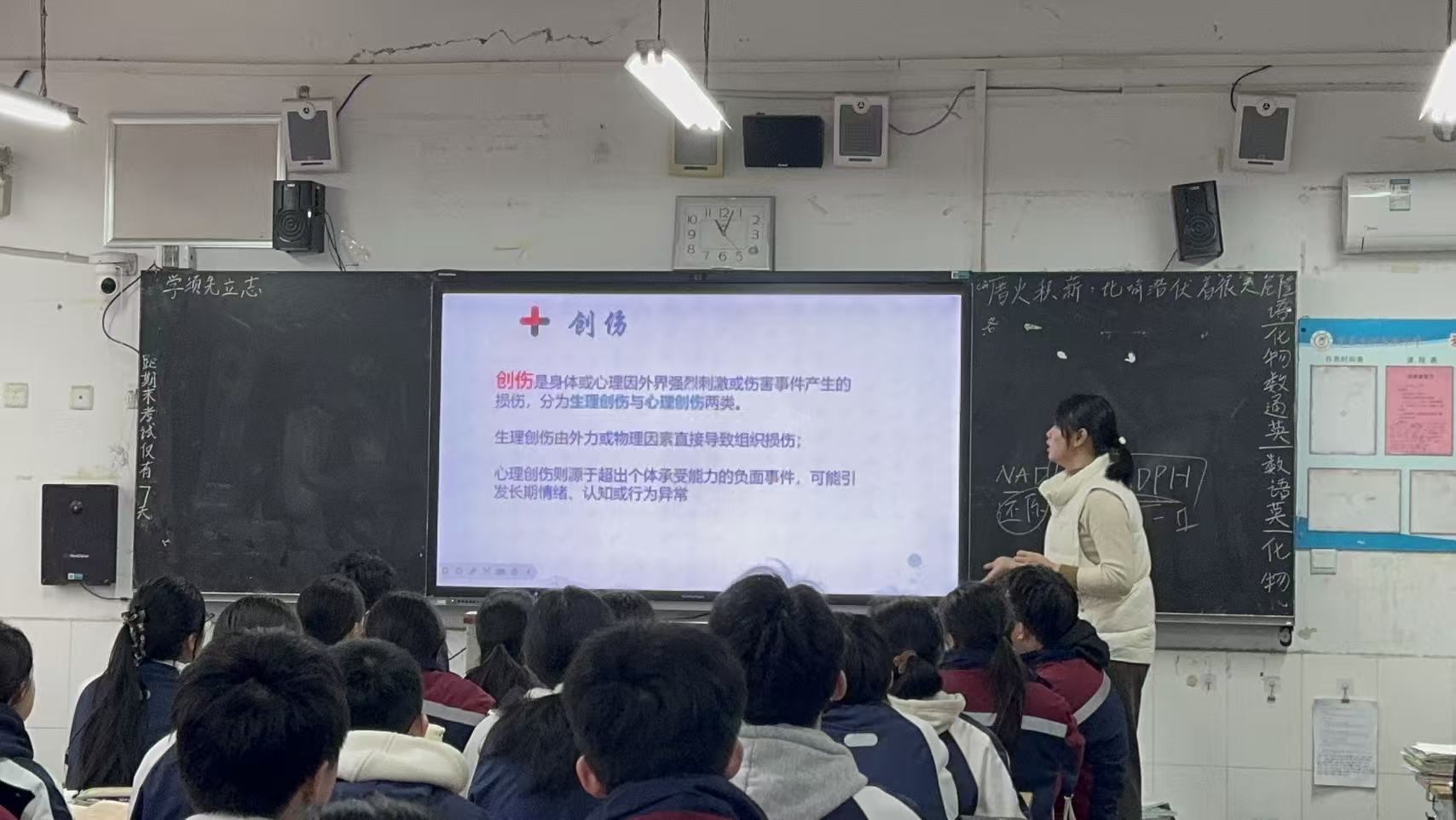 2月8日,创伤急救系列课程正式启幕。首先,志愿者团队与武训中学德育处及高二各任课教师开展专项座谈,深入调研校园日常高频安全隐患、学生运动及校园活动中的常见受伤情况,同时关注高中生青春期心理特点,精准制定“急救技能+心理疏导”的课程计划,让教学内容更贴合学子身心需求。首日课程以基础创伤识别与简易处理为核心,志愿者们用通俗易懂的语言,系统讲解擦伤、割伤、扭伤等校园常见轻度创伤的识别要点,现场示范伤口清洁、按压止血、简易包扎的标准操作流程。课堂上,志愿者耐心答疑、细致指导,同学们认真聆听记录、积极互动提问。