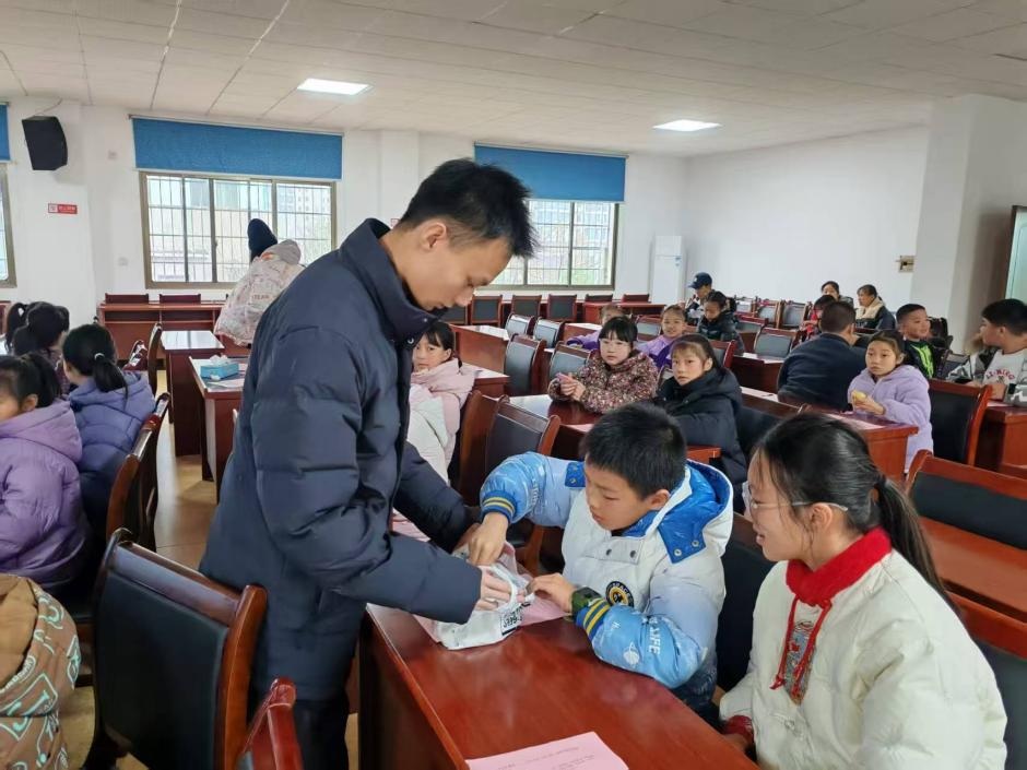 图4 志愿者正为参与活动的孩子发放小礼品,现场互动温馨,孩子们的喜悦都写在脸上。