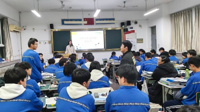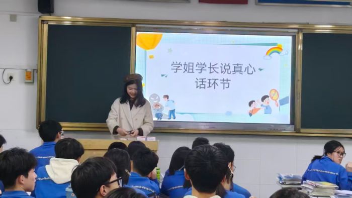 到达宣讲班级后,成员们围绕 PPT 内容展开讲解,先以美丽的校园环境与生动的校园故事吸引学弟学妹们的注意力,再逐步过渡到河海大学的学科实力、专业设置等专业信息,让大家对大学的学习与生活有了全面且直观的认知。在经验分享阶段,成员们结合自身高三备考经历,分享了合理规划时间、高效复习、调节考前焦虑等实用经验,针对学弟学妹们提出的 “如何平衡各科学习”“如何选择目标院校” 等问题,逐一进行耐心解答,现场互动氛围热烈。