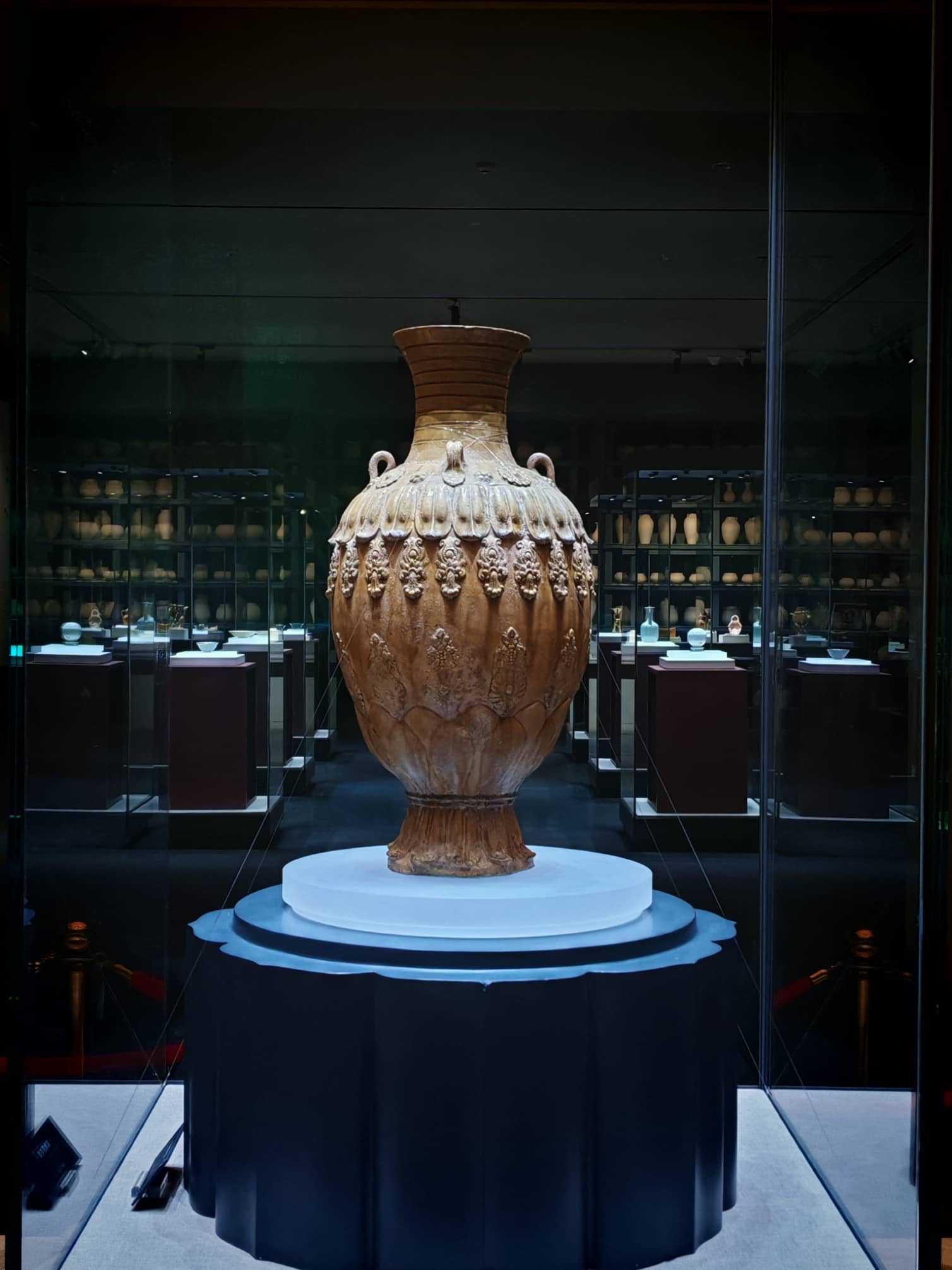 图为北朝时期青釉莲花尊展品