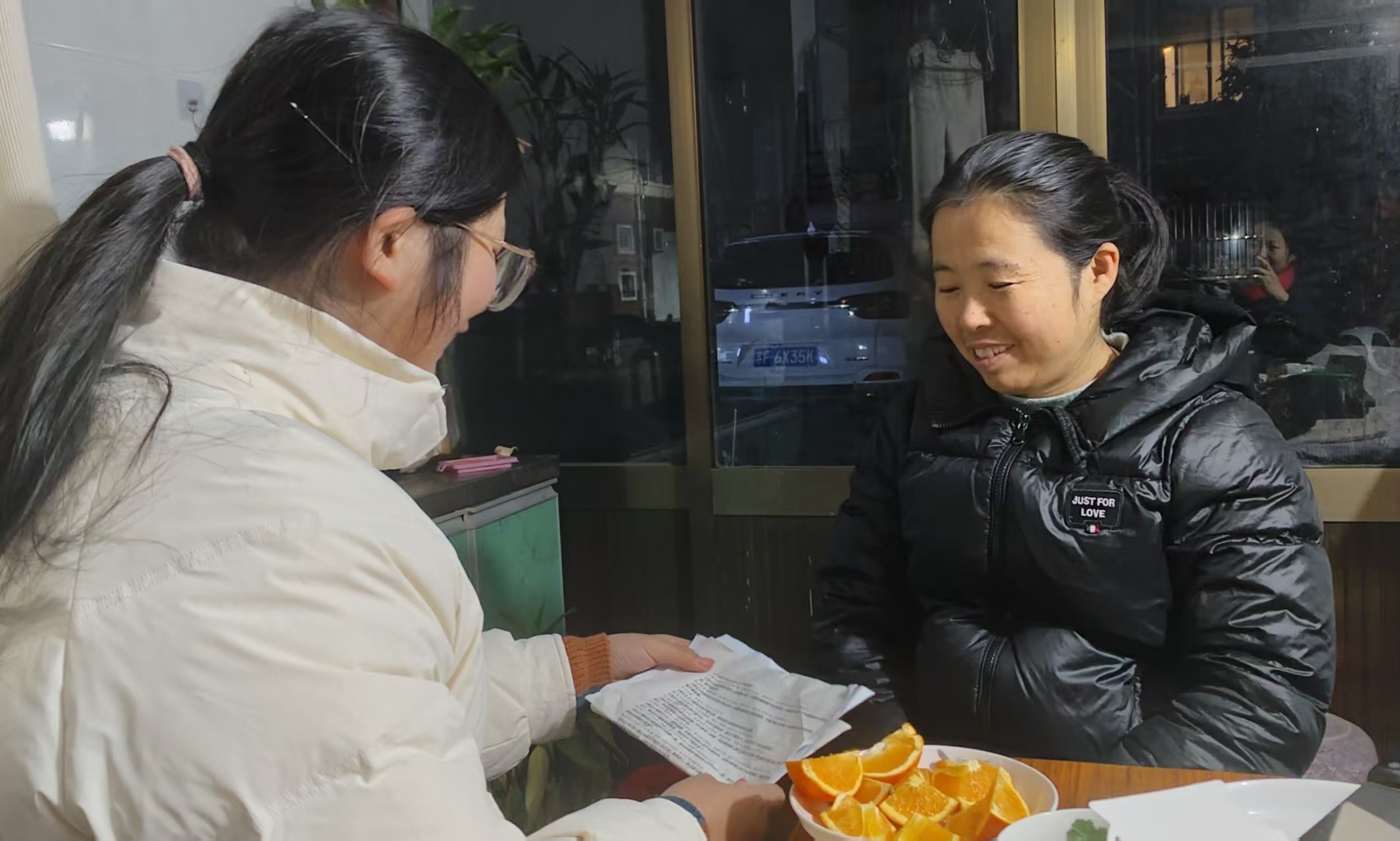 图为团队成员帮助村民填写调研问卷。蔡司晨 供图