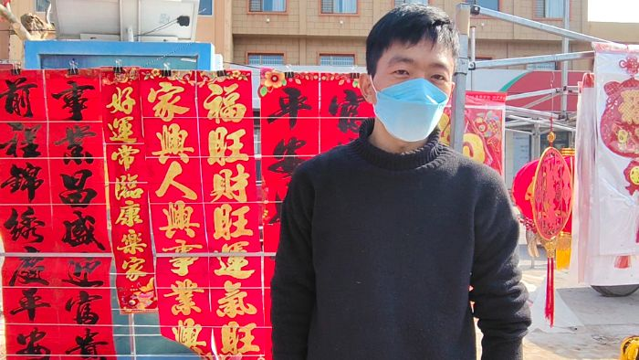 “今年过门笺的售卖情况一般。”李师傅一边整理,一边和实践队员聊起生意。他说,往年此时摊位前总是挤满人,今年客流量明显减少。李师傅介绍,今年购买过门笺的消费者中,青年群体占比明显减少,老年人仍是主力。“现在年轻人大多习惯在拼多多等电商平台买年货,很少特意来大集挑选,这也导致整体消费量有所下降。”