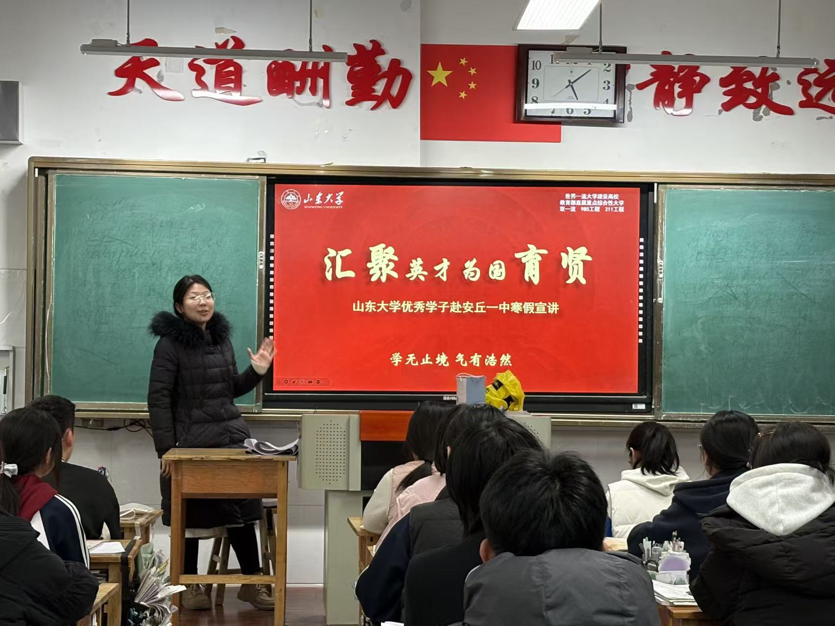寒随一夜去,春逐五更来。2026年2月8日,山东大学“安一小队”宣讲队的成员刘晓彤、赵祥青、葛耘菲、陈慧琳回到母校安丘市第一中学进行招生宣讲。她们将课堂所学化作脚下的力量,重返母校讲台,用专业视角点亮梦想,用责任担当传递温度。这个冬天,他们以青春之名,赴宣讲之约,在知行合一中践行初心使命,在躬身笃行中彰显青年担当。让我们一同走进她们的故事,见证山东大学学子的别样风采。