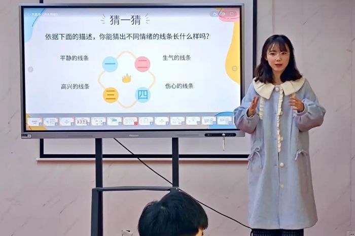 “如果线条有情绪,会是什么样子呢?”的提问瞬间点燃了孩子们的好奇心。有人说开心的线条是跳跃的圆圈,有人说生气的线条是尖锐的折线。大家的想法童真而生动。