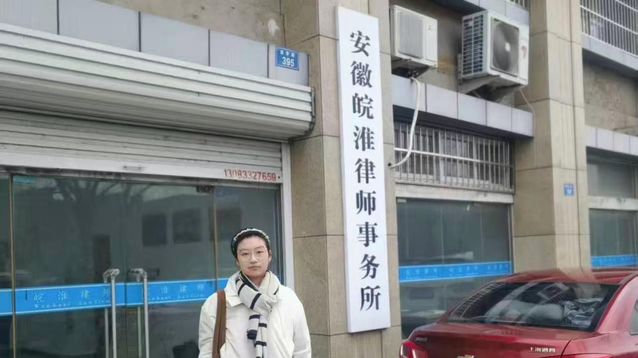 图4:实践队成员张书涵与受访律所的合影