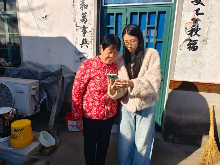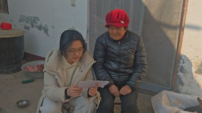 在潍坊市昌邑市的农户家中,队员拿出手机耐心展示问卷内容,逐题讲解。针对老年农户视力不佳、识字不多的情况,队员们一边念题,一边用方言转述,仔细记录下农户对闲置宅基地盘活的期待,以及对村集体用地规划的建议。