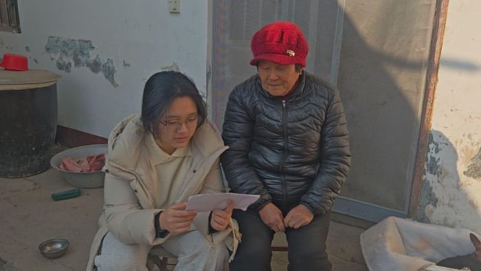 图为实践队员与王大娘在村民家中交谈。刘芮希供图