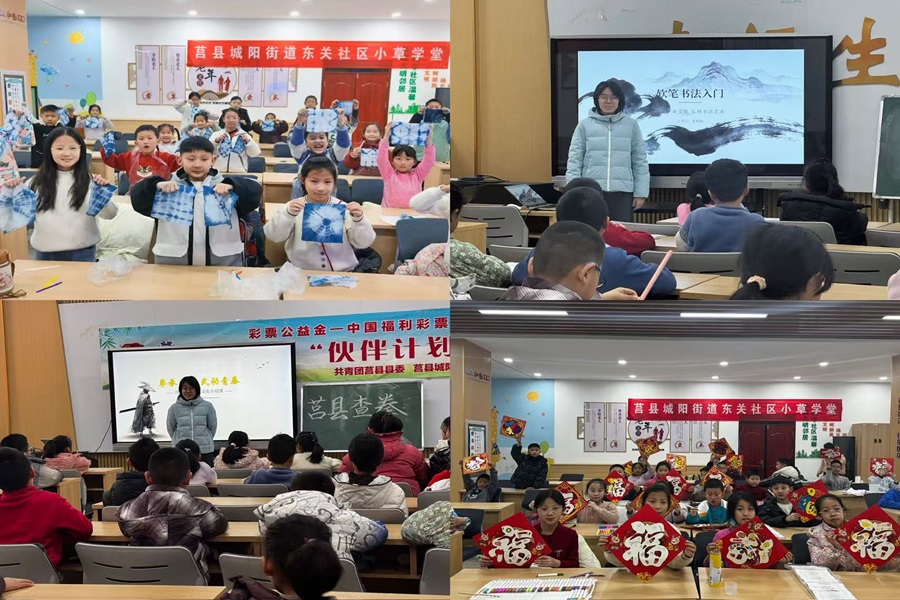 为让非遗文化走进群众,让更多人感受传统技艺的魅力,实践团在日照莒县城阳东关社区开展了“非遗进课堂”普及活动,将调研所学转化为传播力量。活动现场,吴梦含围绕过门笺的历史由来、制作工艺、民俗寓意展开讲解,用生动的语言搭配实物展示,让孩子们了解这张“彩色门帘”背后的文化故事;张梓颍带大家走进查拳的世界,讲解查拳的发展脉络、核心招式,现场演示基础动作,引导孩子们亲身感受传统武术的刚健之美;张艺彤则带来了蓝染技艺体验,详细讲解蓝染的原理、步骤与技巧,带领孩子们亲手制作蓝染作品,在折叠、捆扎、染色的过程中,感受这门古老艺术的神奇与魅力。课堂上,孩子们积极参与、踊跃互动,在聆听与实践中,近距离接触非遗、了解非遗、爱上非遗,也在心中种下了传承非遗的种子。
