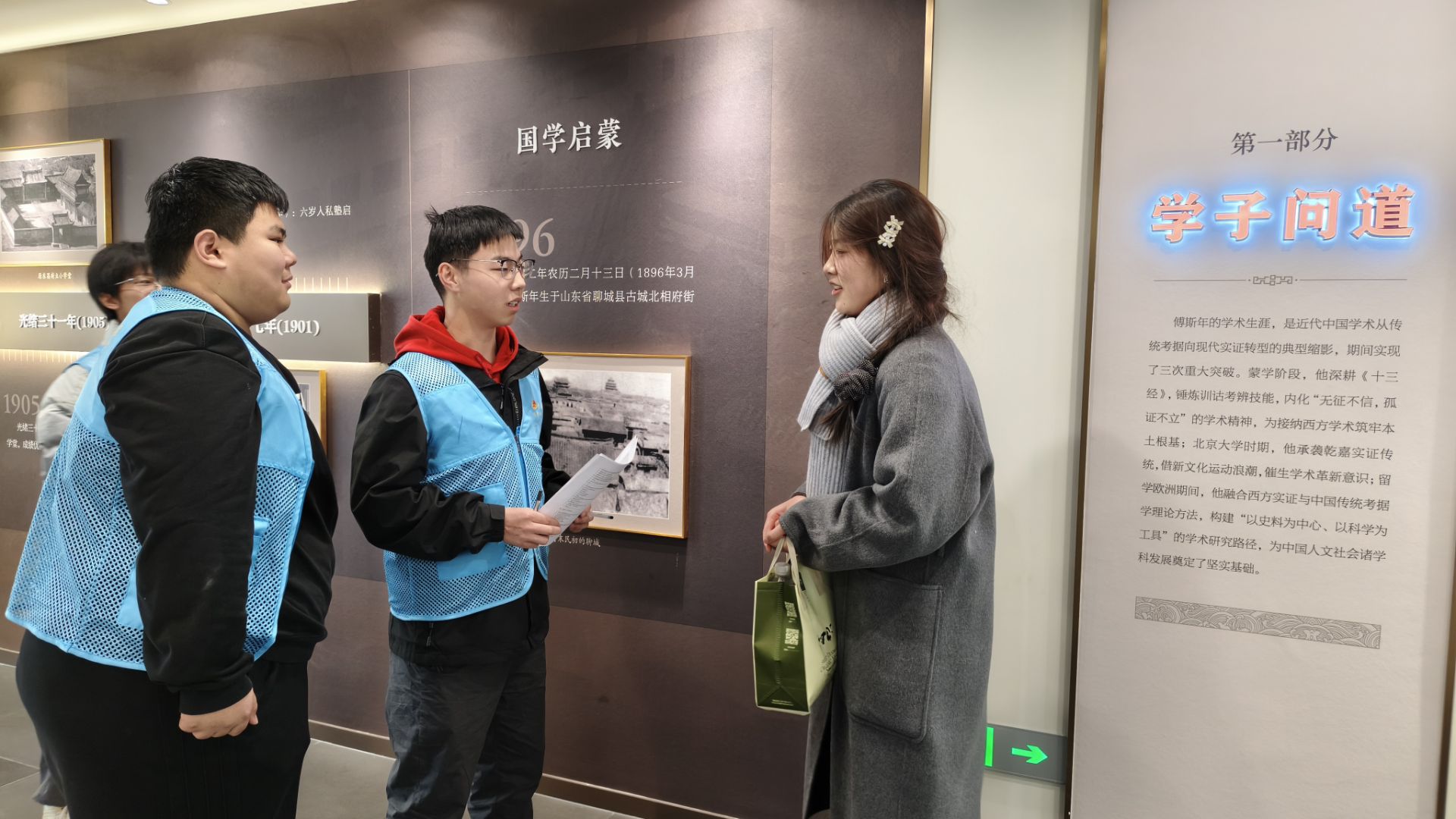 在傅斯年纪念馆,青年志愿者们驻足史料文献前,凝视实物展品,聆听讲解介绍,沉浸式感悟傅斯年先生“上穷碧落下黄泉,动手动脚找东西”的治学理念与心怀家国的赤诚坚守,让先贤风骨在心中扎根。