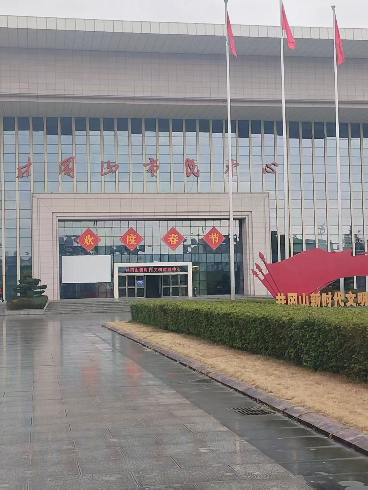 离开中心公园后,团队前往井冈山市市民中心进行走访调研。庄重简洁的建筑、有序的服务布局与浓厚的红色氛围,充分展现出当地务实高效的治理思路与发展理念。队员们通过现场观察与了解,直观感受到井冈山在传承红色基因、完善基层服务、推进新时代文明实践等方面的扎实举措与显著成果,为理解革命老区的现代化建设与治理实践提供了鲜活真实的案例。