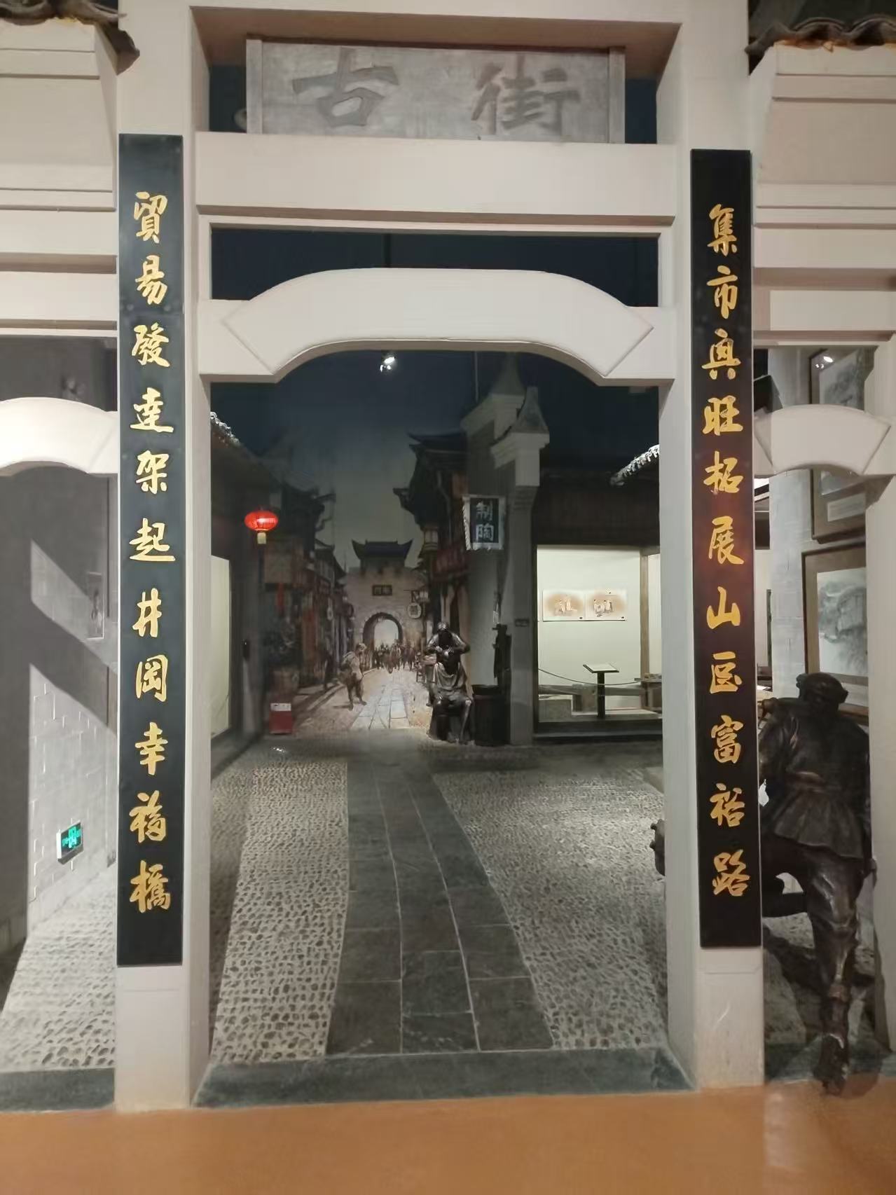 实践团队走进井冈山民俗博物馆,在一件件实物和复原场景中,深入了解井冈山的民俗文化与红色历史。服饰展区内,客家服饰、蓝印花布等展品静静陈列,既保留了传统韵味,又体现了地方特色,记录着当地百姓的生活智慧;生产生活展区里,斗笠、蓑衣等老物件格外引人注目,它们曾陪伴红军战士跋山涉水,让同学们深刻感受到革命年代的艰苦与先辈们自强不息的精神。古街复原场景则再现了当年井冈山集市贸易的热闹景象,让大家明白商贸流通在革命根据地时期的重要作用;民俗艺术展区的画作风格朴实有趣,展现了当地农耕生活与自然相融的独特风貌,让同学们在轻松的氛围中收获了知识与感悟。
