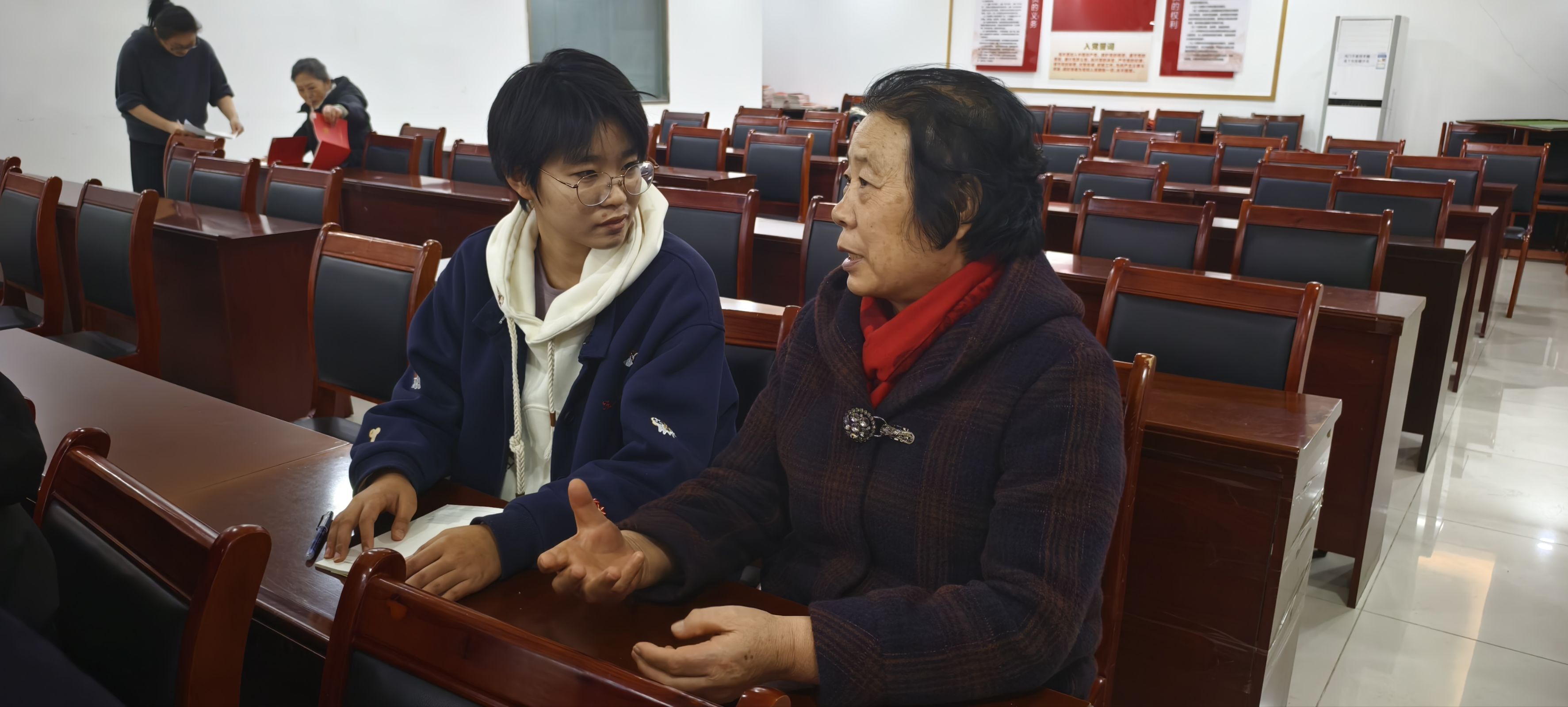 实践尾声,全体团队成员集体专访泰和社区党支部书记李蓉蓉。李书记介绍,近年来社区积极响应环翠区“美德环翠”建设号召,通过评选“最美家庭”、设立“家风文化墙”等形式,引导居民传承优良家训、涵养文明新风。
