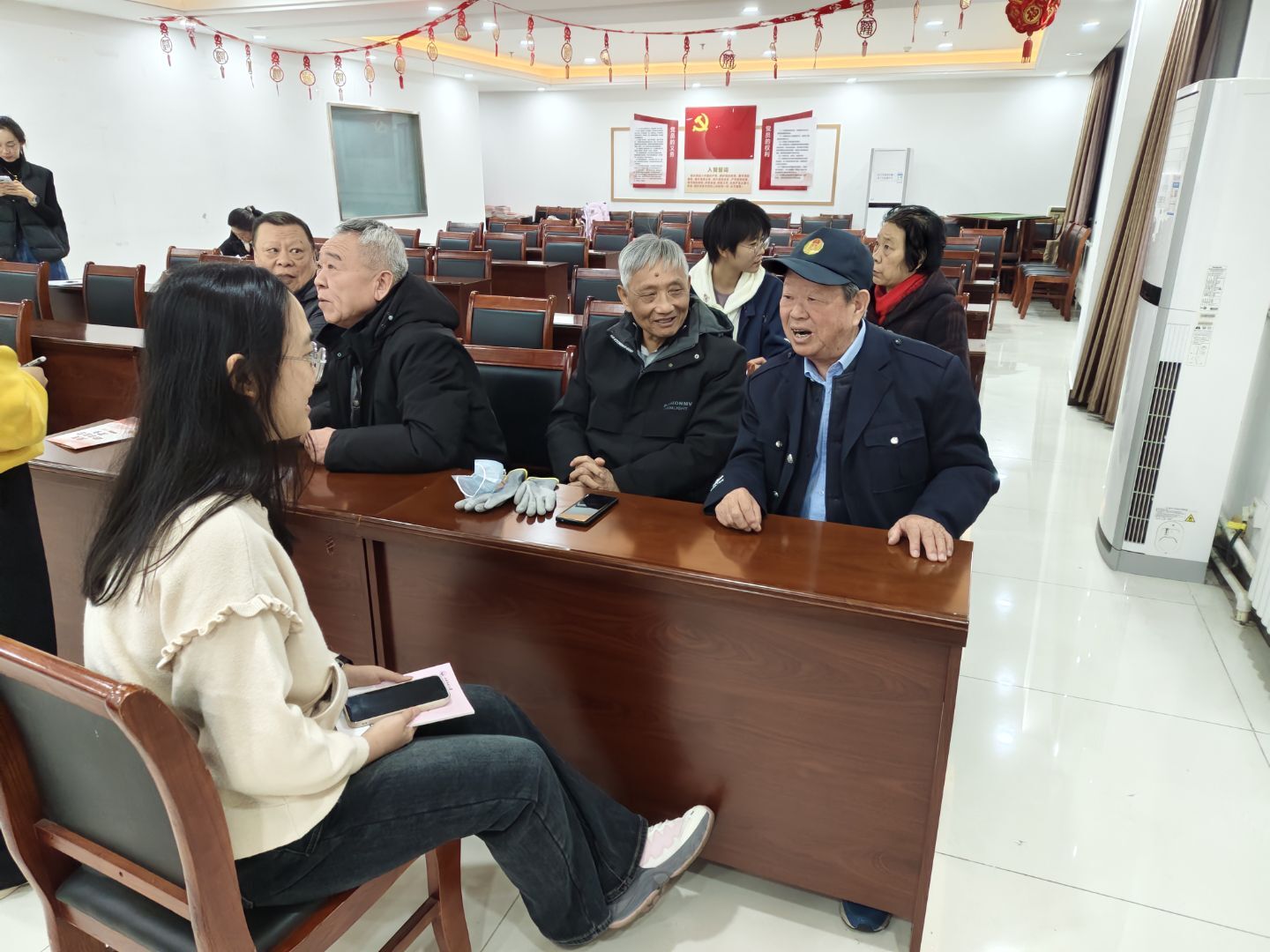 随后,团队中三名同学分头行动,分别同社区的五位老党员进行交流。五位老党员虽经历各不相同,但都在言谈中流露出坚定的理想信念和质朴的人生信条。