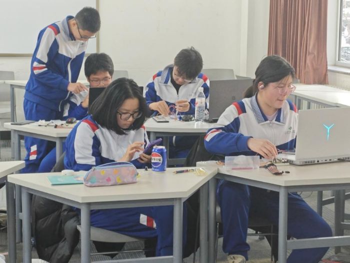 南里社区,有一名北京十一中学的同学,他说“我也想让我学校里的同学们能亲身感受一节含“科”量十足的科普课”,科是科技的科。实践团带领北京市第十一中学走进机器人实验室课堂,让学生近距离体验智能体物理实验及传感器控制技术。从社区到校园的辐射带动,启迪中学生的科创思维。