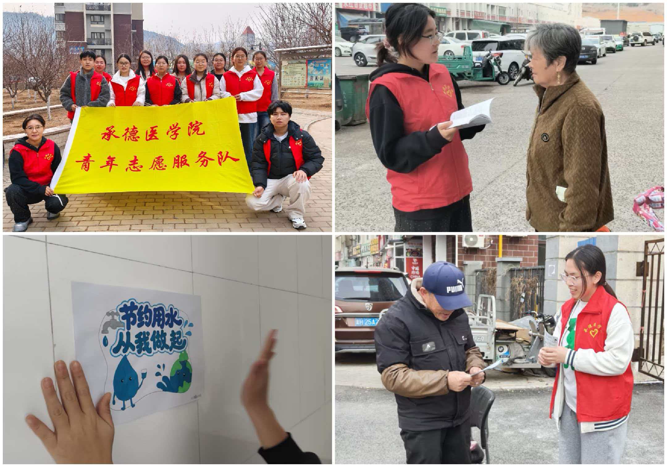 为贯彻落实习近平总书记关于弘扬雷锋精神的重要指示,响应“世界水日”“中国水周”环保号召,提升志愿者们及社区居民节水护水意识,承德医学院基础医学院2023级医学影像学第四志愿服务队于2026年3月20日至21日开展“赓续雷锋千载志,滴水真情护家园”主题志愿服务系列活动,以 “宣讲传知、文创赋能、实践践行”为脉络,将节水法治理念与志愿精神深度融合,用实际行动助力节水型社会建设。承德市水务局节约用水科张建伟科长,承德医学院基础医学院周腾飞、崔岳老师以及基础医学院2023级医学影像学第四志愿服务队全体成员参与活动。