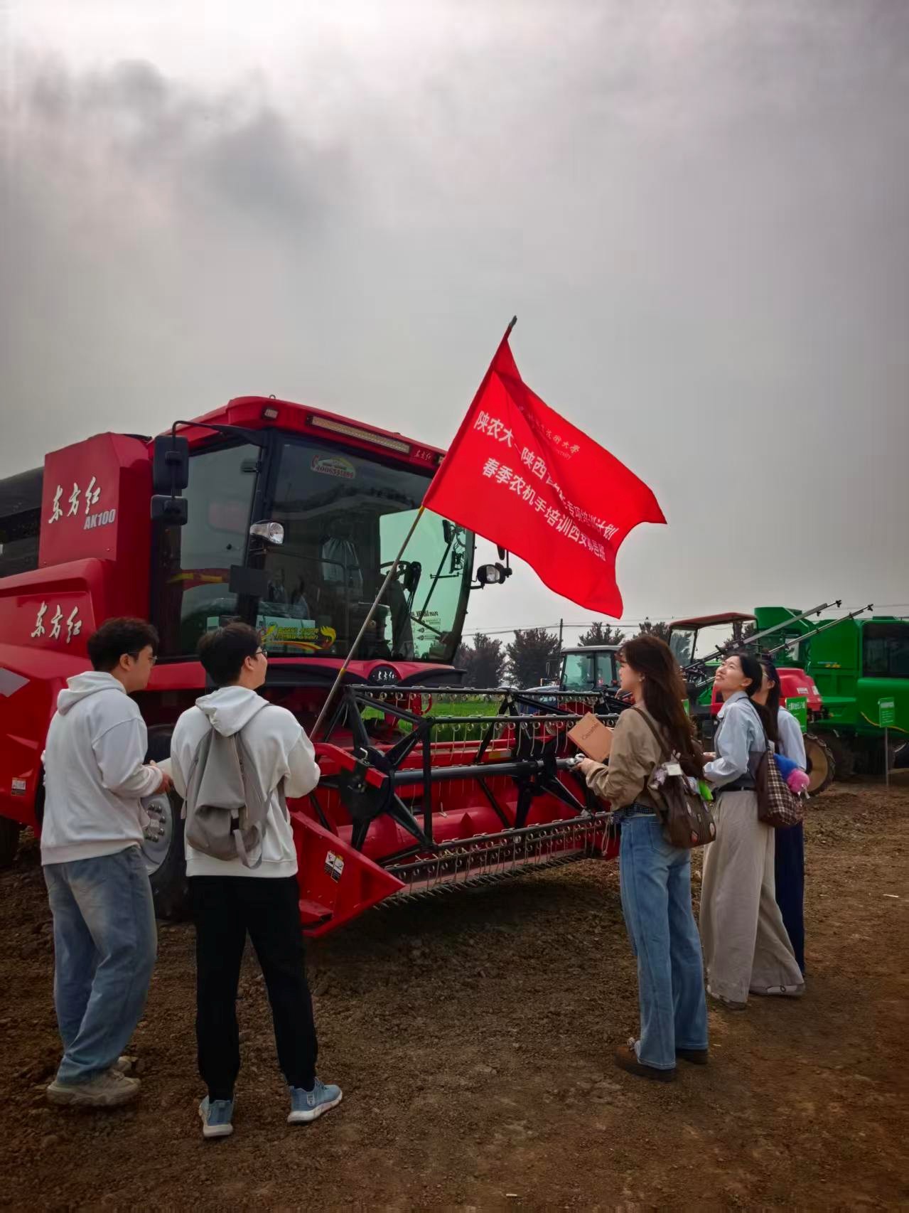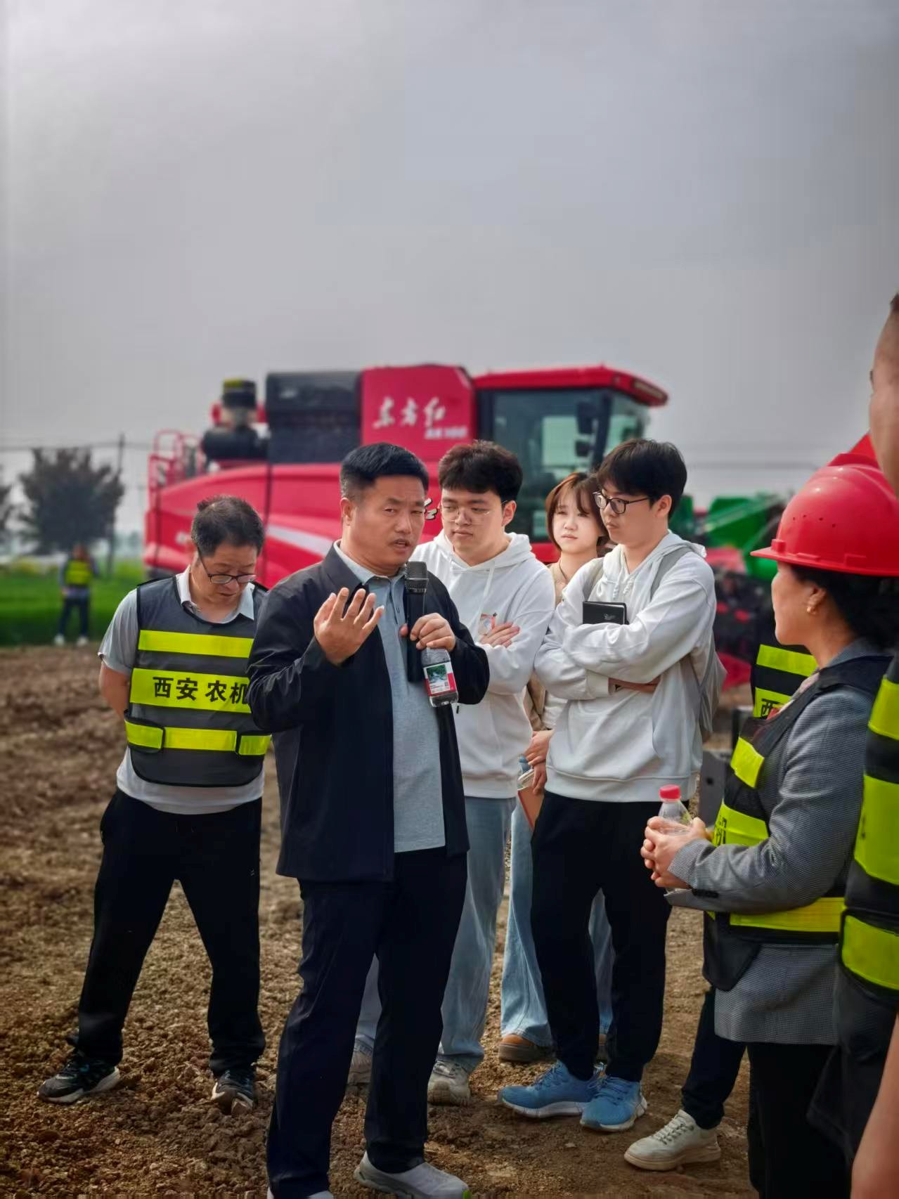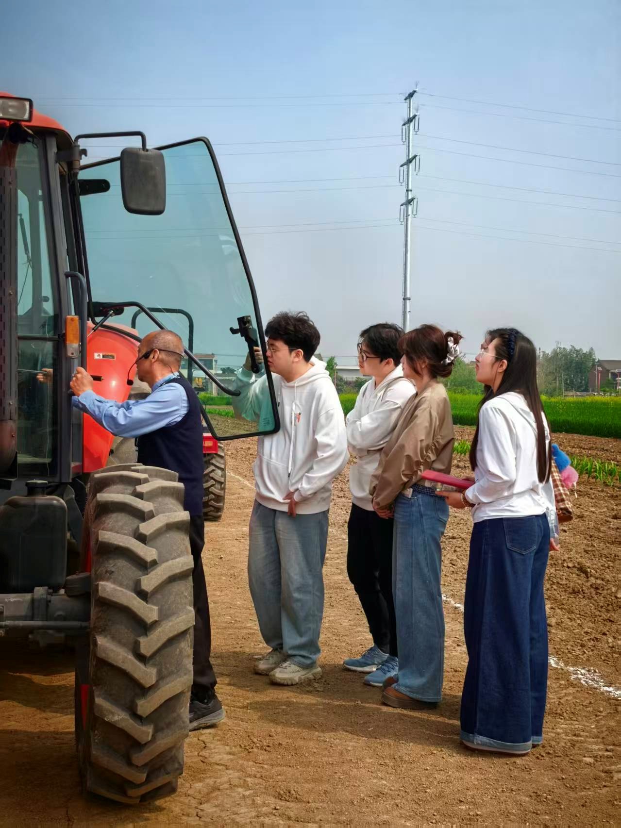 活动中,基地负责人结合当地农业产业发展实际,围绕农机装备功能特点、标准化田间作业流程、设备安全操作规范以及农业机械化未来发展趋势进行细致讲解。面对大型智能农业设备,同学们认真聆听、积极提问,详细了解驾驶室构造、智能操作界面、标准化作业模式与日常维护保养要点,在面对面交流互动中,切实感受到现代农业技术对提升生产效率、促进农业产业升级的重要作用。