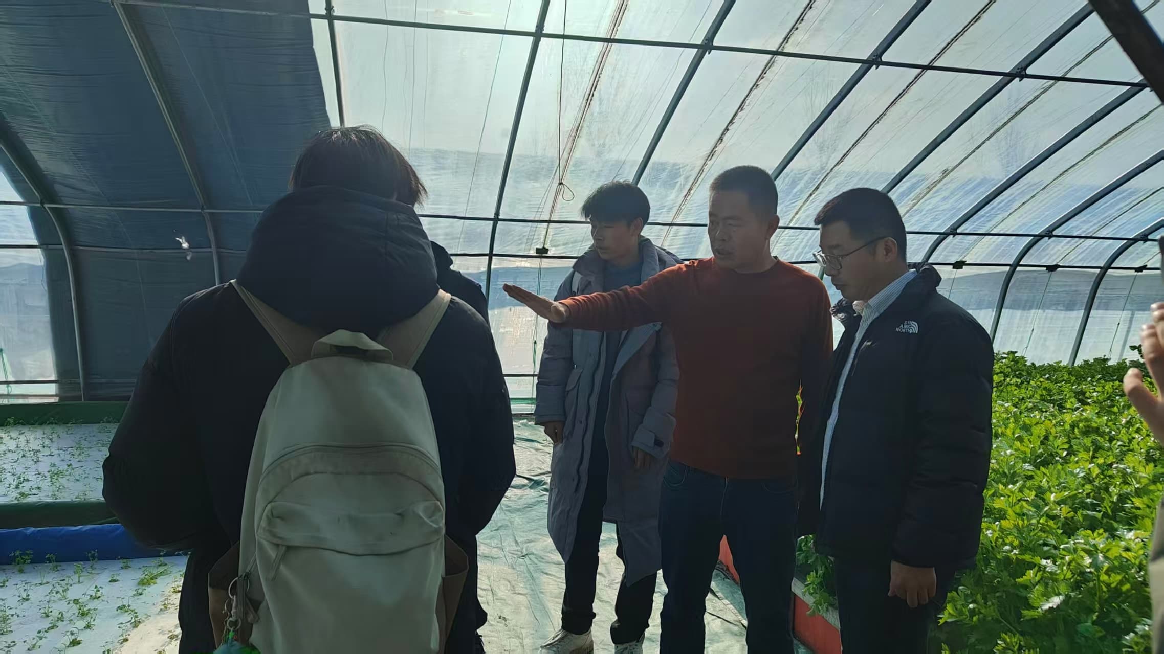 团队先后参观丰满园公司芹菜、韭菜无水的生产基地,在随后的交流中,双方就无土育苗、无土生产管理、无土栽培选种等问题进行讨论。企业方对学院在窒沙活化与番茄良种繁育方面取得的成效表示肯定,并表达了进一步合作的意愿。团队方面也对企业在芹菜、韭菜无土种植设施、栽培流程与市场拓展方面的实践经验予以认可,表示愿意加强交流、共同推动相关领域发展。