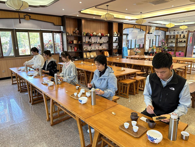 1月28日中午,实践队与台籍茶人围坐茶席,以茶为媒展开座谈。台籍茶人分享了跨越海峡来学习茶餐的故事,他们表示茶文化作为文化瑰宝联系着两岸儿女的情感。队员们也由此提问,从“闽台茶文化的共同点”聊到“茶文化如何吸引年轻群体”,茶香里满是文化共鸣的暖意。