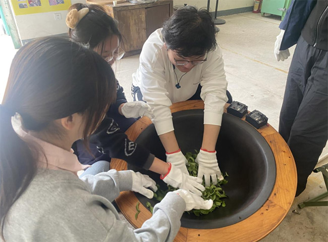 27日下午,实践队来到传统制茶工坊。从萎凋、杀青到揉捻、烘焙,制茶师傅手把手演示着每一道工序。当亲手揉捻的青叶在炒茶锅里散发出栗香,当带着温度的茶饼被压制成型,队员们真切触摸到闽台制茶技艺一脉相承的温度。师傅说:“漳浦的茶青,台湾的手艺,做出来的茶,两岸人喝着都觉得亲。”