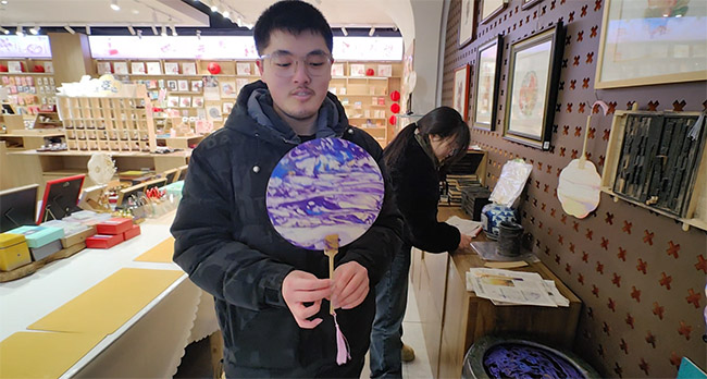 在场馆手工体验区,团队重点参与漆扇制作实践活动。漆扇作为传统漆艺的重要载体,其制作流程涵盖调漆、上色、晕染、风干等多道工序,对技法与耐心要求较高。团队成员依序完成各项操作步骤,亲身体验传统手工艺的制作过程。通过实践环节,团队更加直观地认识到非遗技艺背后的匠心精神与文化价值。