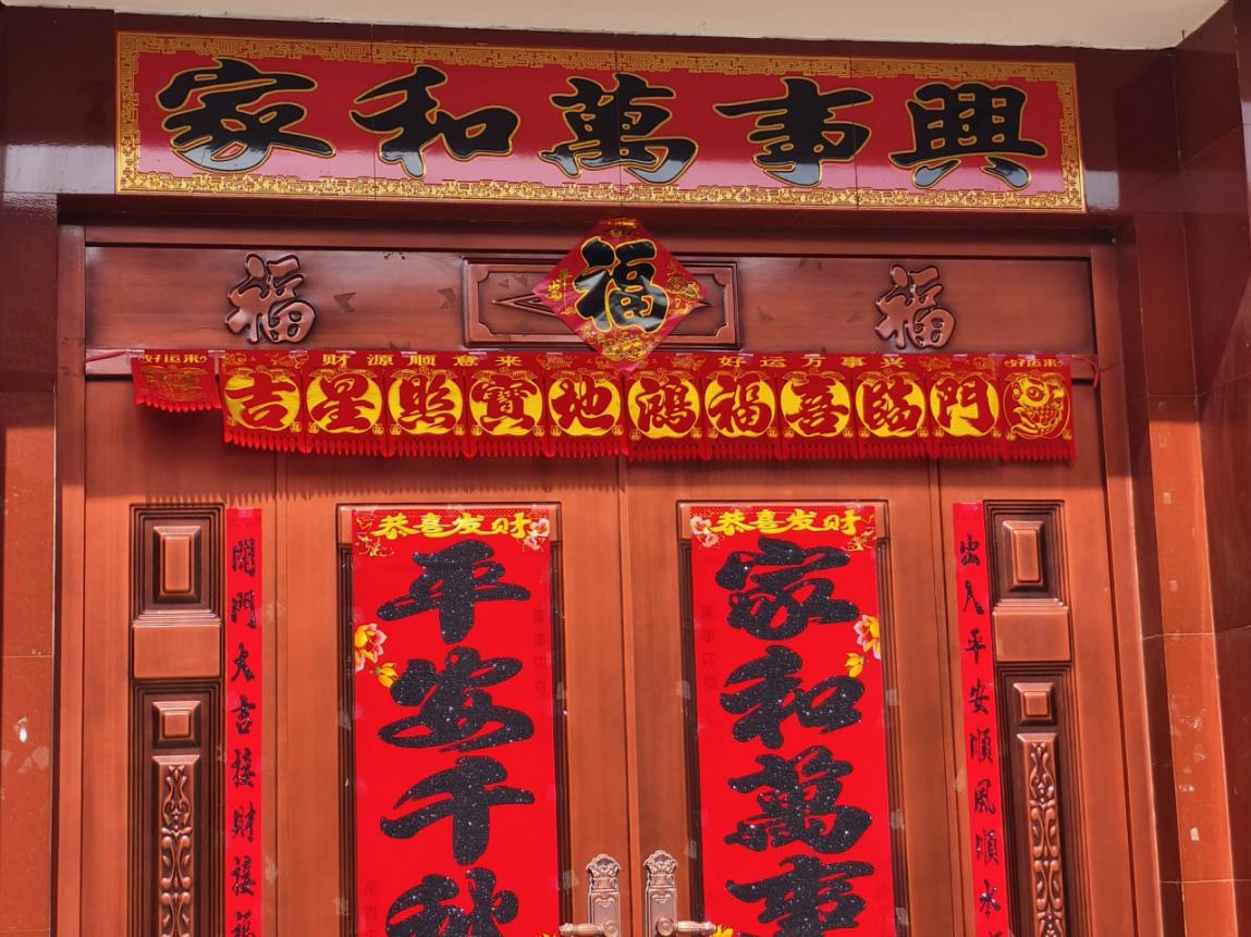 实践队员观察发现,传统彩色纸质过门笺主要见于老年家庭,年轻人多选择全红色一体式绒布过门笺。不少老年家庭在张贴时,数量与颜色排布未严格遵循传统规制,有的按文字内容排布,有的随心张贴,数量有五张、七张不等,部分家庭根据门体大小张贴十余张,传统张贴规矩有所简化。