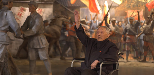 “以前白驹只有韩德勤的部队,吃饭不给钱是常事,可新四军一来就不一样了!”老人的讲述从军民鱼水情说起,眼神中满是怀念。他回忆,当年乡亲们自发做烧饼慰问部队,战士们坚持“先付钱再收粮”,绝不占老百姓一分便宜;有新四军干部不小心打碎村民金大嫂的水瓶,执意留下珍贵的雨靴作为赔偿,而那双雨靴在当时是普通人家罕见的“稀罕物”。谈及会师当天的场景,老人更是历历在目:“白云山寺院里挤满了人,两军战士紧紧拥抱、笑着流泪,歌声和抗日口号响彻云霄,新四军还杀猪买鱼招待八路军战友,那份并肩战斗的情谊让人一辈子忘不了”。他还分享了会师后当地的新变化——村民用“丢豆子”的民主方式选举乡长,军民同心、风气一新,1942年他自己也当选为河北乡乡长,亲身参与到根据地建设中。