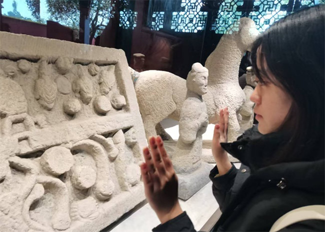 图为实践队员观察石刻