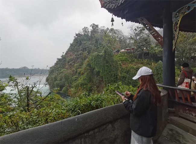 团队始终紧扣国际文化交流主题。在怀古亭等中法元首交流过的场景,成员们结合都江堰作为文化交流窗口的独特定位,探讨中华优秀传统文化走向世界的路径。