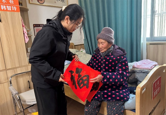 翰墨飘香迎新春敬老爱老送祝福 春节前夕,紫石社区联合公益团队举办“骏马迎春·福字春联送到家”主题活动。我主动承担起带领小朋友书写福字春联的任务。从铺纸研墨到指导握笔,耐心陪伴孩子们创作出一幅幅充满童趣的作品。随后,我和社区工作人员一起走访辖区孤寡老人、残障人士和困难家庭,亲手将春联贴到门上,送上节日物资和新春问候。看着老人们脸上的笑容,我觉得所有的付出都值得。