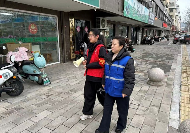 安全宣传进万家筑牢节日“防护网” 春节前后是安全事故易发期。我跟随社区工作人员深入居民楼栋和沿街商铺,开展烟花爆竹禁燃禁放及燃气安全入户宣传。耐心向居民讲解政策要求,普及用火用电常识,协助排查安全隐患。“奶奶,燃气灶用完记得关阀”“叔叔,电动车不要停在楼道充电”……一句句暖心叮嘱,传递着平安过节的理念,也为社区筑牢安全防线贡献了一份青春力量。