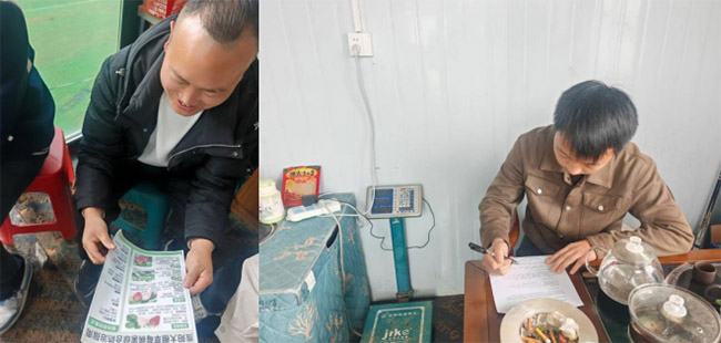 “棚内湿度控制在85%以下,晴天上午及时通风,能有效抑制病菌滋生;根腐病要结合灌根,重点浇灌茎基部,效果显著。”实践队成员结合贵阳冬春大棚温湿度特点,手把手演示水肥管理、植株修剪技巧,提醒莓农及时摘除老叶、病果,集中带出棚外处理,切断病害传播链。针对莓农关心的药剂稀释比例、用药时机等问题,成员们耐心解答,现场发放图文并茂的草莓绿色防控宣传单,将专业学术知识转化为通俗易懂的操作指南,让科技真正落地田间。